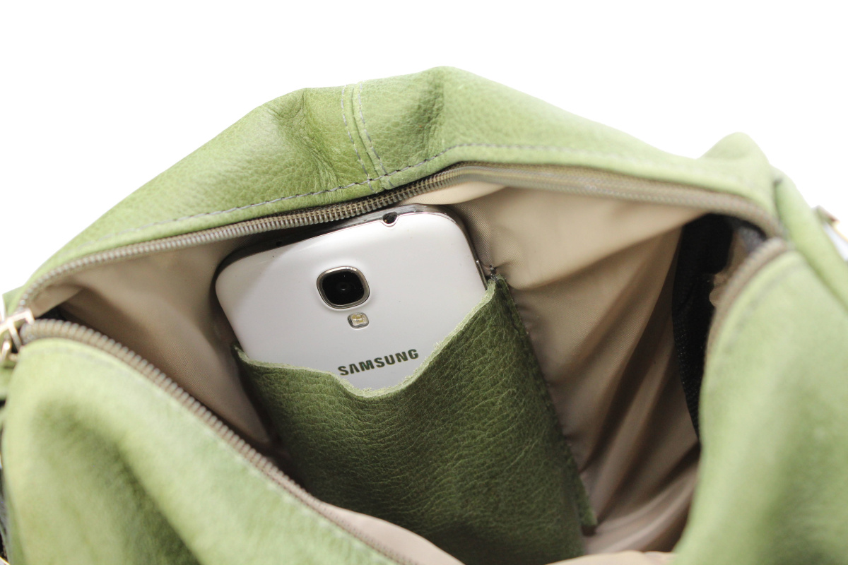 - wewnątrz znajduje się praktyczna kieszonka na telefon komórkowy oraz niewielka kieszonka z zamkiem na dokumenty,