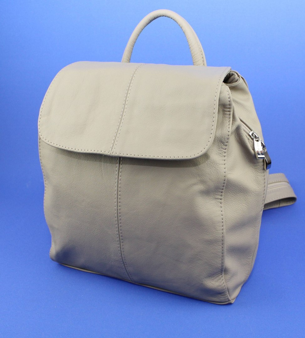 Lekki plecak damski skórzany firmy MAGRE, model NATALIA. Uszyty ze skóry naturalnej licowej wysokiej jakości, sprawdzającej się doskonale w codziennym użytkowaniu. Miękka i elastyczna skóra jest wytrzymała na zmienne temperatury otoczenia, a jej gładka powierzchnia przyjemna w dotyku. Podwójne szelki plecaka mają około 87 cm długości i wszyty suwak, co ułatwia noszenie go również na jednym ramieniu. Plecak ma kształt zbliżony do trapezu i wyposażony jest w trzy różne komory, z czego jedna jest zapinana na suwak. Całość jest zamykana klapką z dwoma magnetycznymi napami zapobiegającymi wypadnięciu zawartości plecaka. Uniwersalny beżowy kolor pasuje do wielu stylizacji, a dodatkowy schowek zapinany na suwak znajdujący się z tyłu plecaka pomieści ważne dokumenty czy drobiazgi. Wygodne ucho doszyte w górnej części plecaka pozwala na noszenie go również w ręku. Wymiary modelu NATALIA to: 32 x 33 x 10 cm.