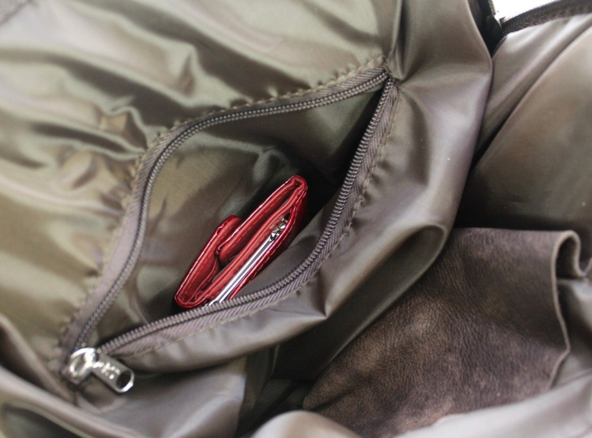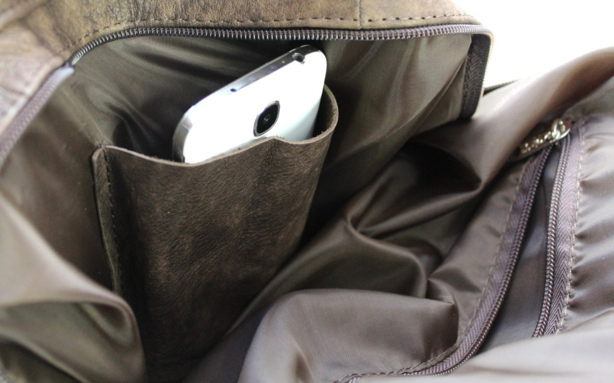 - wewnątrz środkowej kieszeni znajduje się praktyczny schowek na telefon komórkowy oraz niewielka zapinana na suwak kieszonka na dokumenty;
