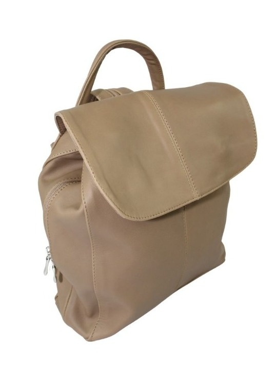 Lekki plecak damski skórzany firmy MAGRE, model NATALIA. Uszyty ze skóry naturalnej licowej wysokiej jakości, sprawdzającej się doskonale w codziennym użytkowaniu. Miękka i elastyczna skóra jest wytrzymała na zmienne temperatury otoczenia, a jej gładka powierzchnia przyjemna w dotyku. Podwójne szelki plecaka mają około 87 cm długości i wszyty suwak, co ułatwia noszenie go również na jednym ramieniu. Plecak ma kształt zbliżony do trapezu i wyposażony jest w trzy różne komory, z czego jedna jest zapinana na suwak. Całość jest zamykana klapką z dwoma magnetycznymi napami zapobiegającymi wypadnięciu zawartości plecaka. Uniwersalny beżowy kolor pasuje do wielu stylizacji, a dodatkowy schowek zapinany na suwak znajdujący się z tyłu plecaka pomieści ważne dokumenty czy drobiazgi. Wygodne ucho doszyte w górnej części plecaka pozwala na noszenie go również w ręku. Wymiary modelu NATALIA to: 32 x 33 x 10 cm.