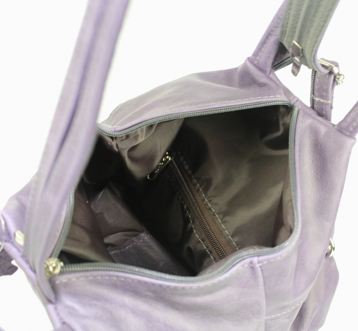 wewnątrz znajduje się praktyczna kieszonka na telefon komórkowy oraz niewielka kieszonka z zamkiem na dokumenty,