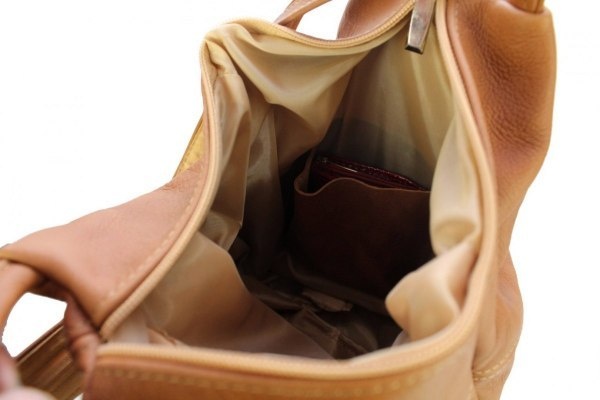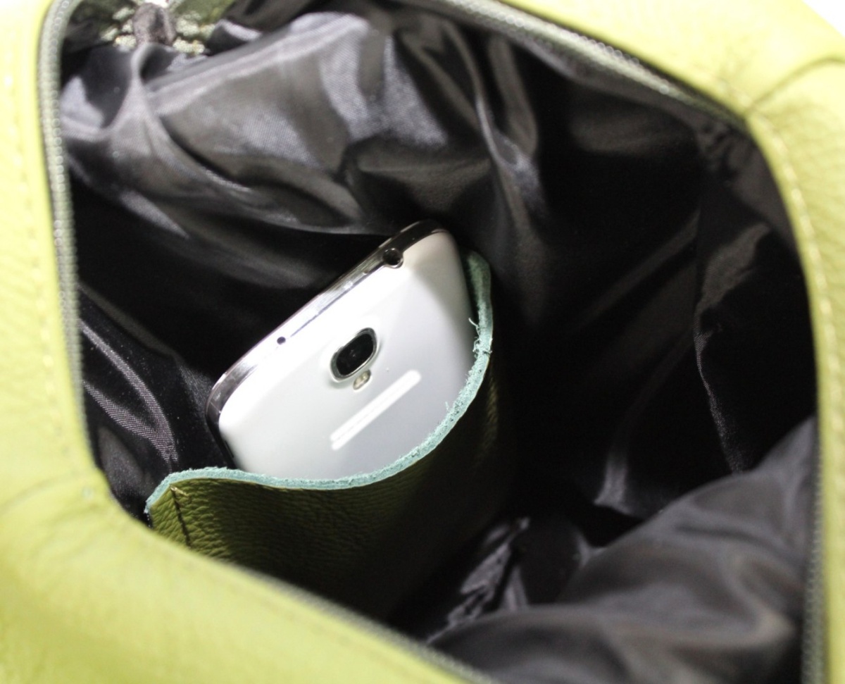 - wewnątrz znajduje się praktyczna kieszonka na telefon komórkowy oraz niewielka kieszonka z zamkiem na dokumenty,
