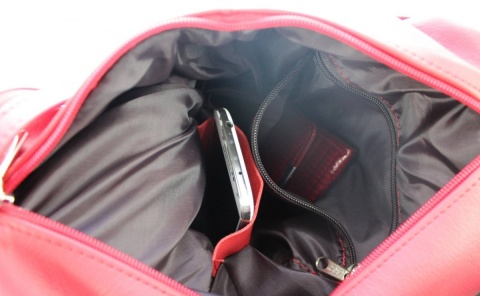 - wewnątrz znajduje się praktyczna kieszonka na telefon komórkowy oraz niewielka kieszonka z zamkiem na dokumenty,