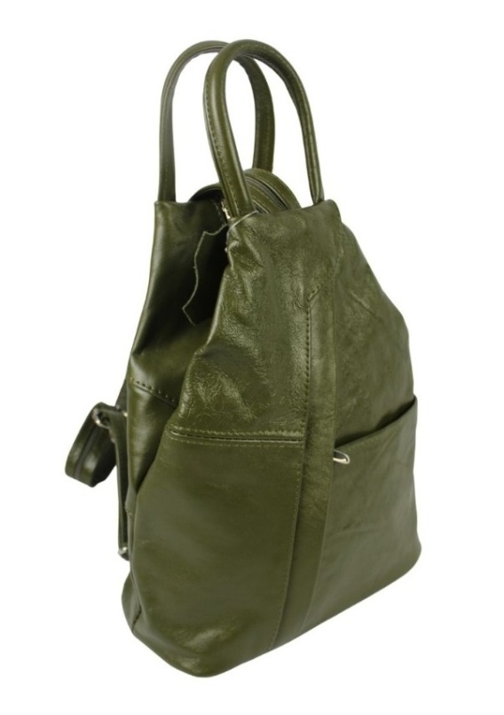 Plecak Skórzany PolskaGalanteria (PL) JOANNA Skóra Naturalna Licowa Gładka OLIWKOWY Połysk