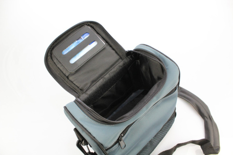 - W zestawie jest solidny pasek parciany o płynnie regulowanej długości (od około 80 do 130 [cm]) umożliwiający noszenie torby na ramieniu lub na skos. Pasek wyposażony jest w mocne zaczepy typu karabinek oraz nakładkę zapobiegającą odgnieceniom na ramieniu