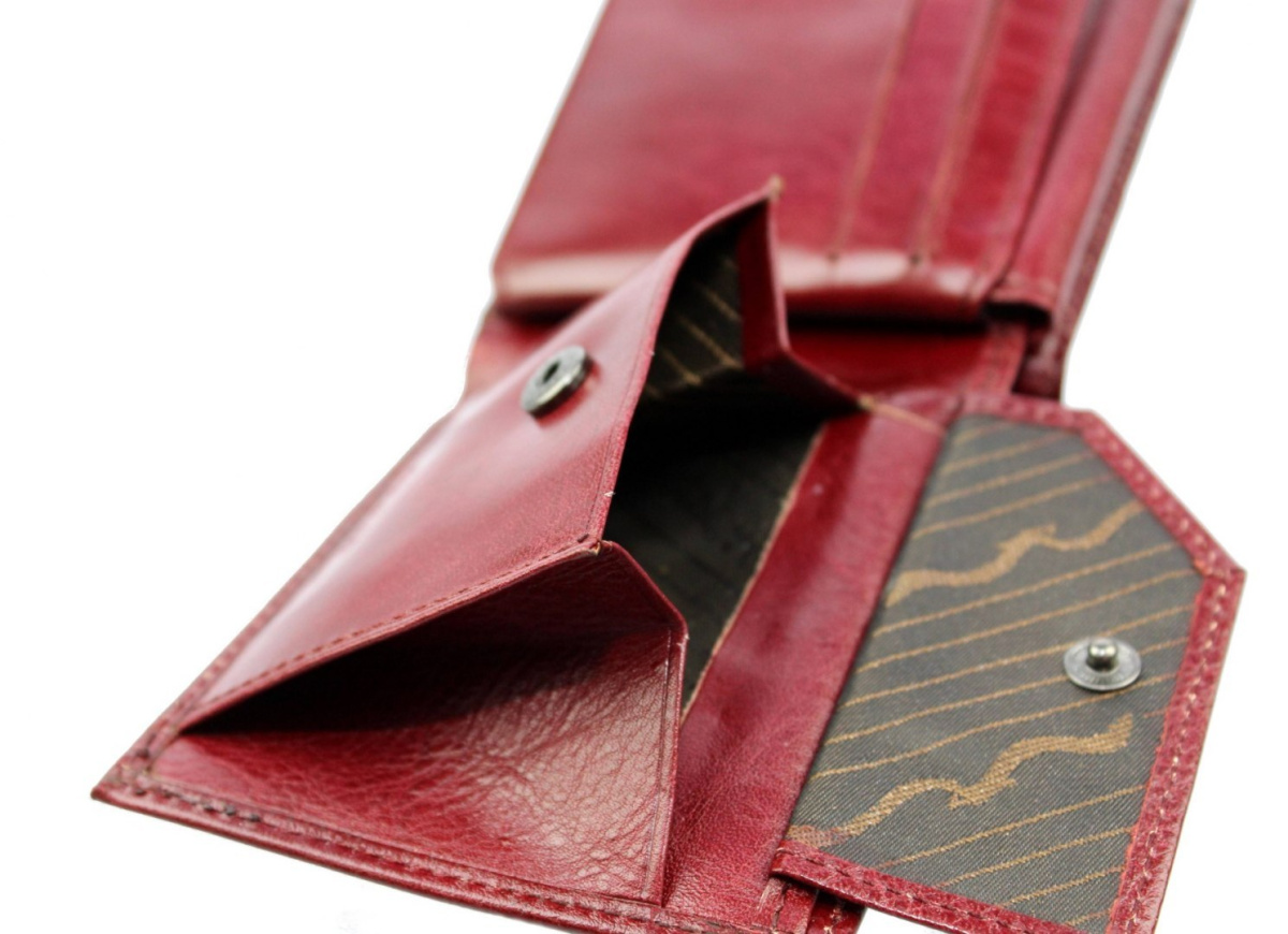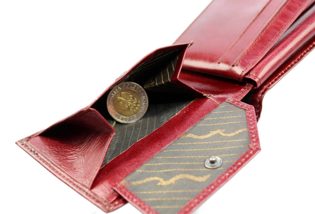 - Duża praktyczna kieszeń na bilon, zapinana na nap, bez prześwitów w dolnych rogach - co zapobiega gubieniu zawartości; kieszeń odchyla się na tyle daleko, że nie ma problemów z wyciąganiem bilonu,