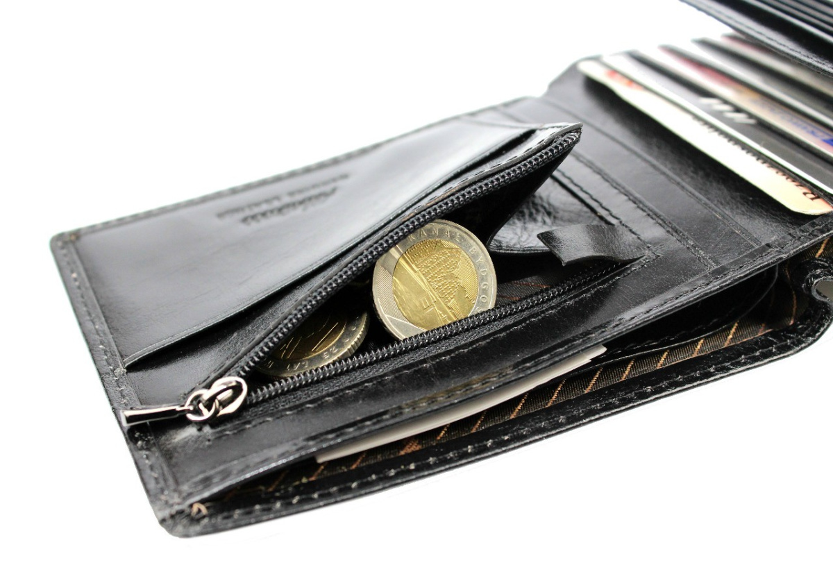 - Duża praktyczna kieszeń na bilon, zapinana na suwak, bez prześwitów w dolnych rogach - co zapobiega gubieniu zawartości; kieszeń odchyla się na tyle daleko, że nie ma problemów z wyciąganiem bilonu,