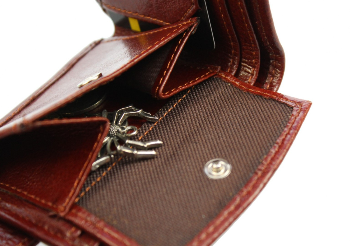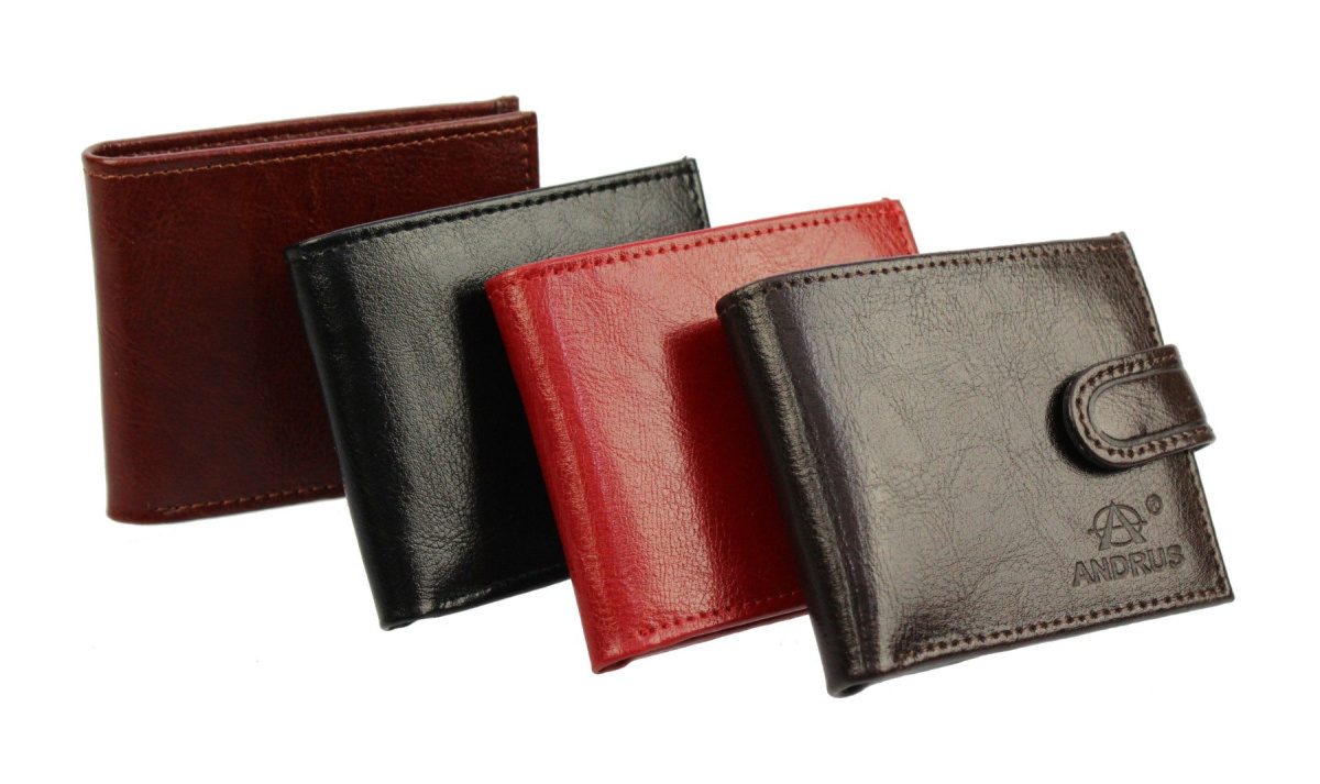 Portfel ANDRUS (PL) Skóra Naturalna Licowa Mały Poziomy Z Zapięciem Praktyczna Kieszeń Na Karty