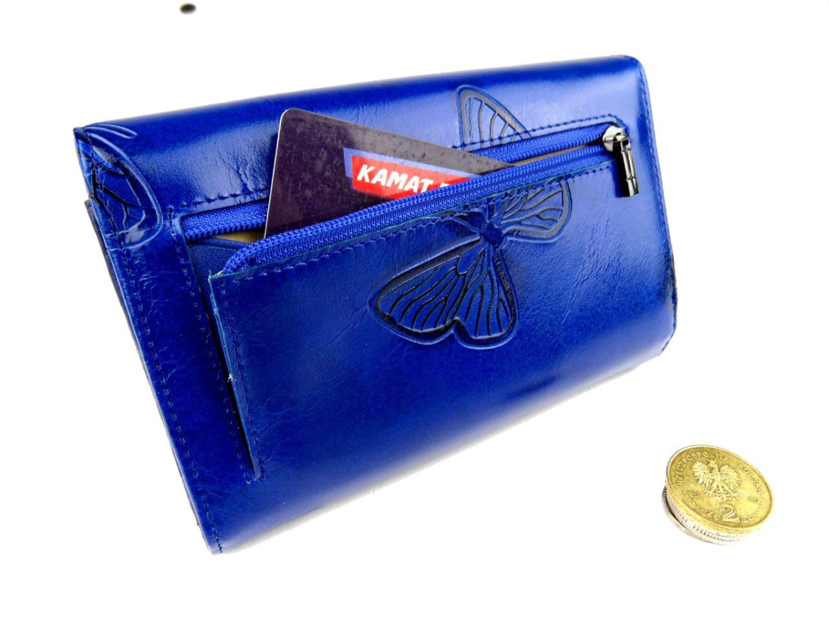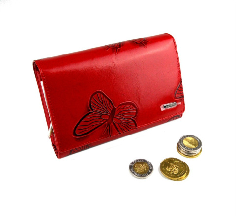 Klasyczny damski portfel wykonany z najwyższej jakości skóry naturalnej. Skóra tego rodzaju bardzo często wykorzystywana jest do produkcji tapicerki skórzanej co dobitnie świadczy o jej niekwestionowanej wytrzymałości. Portfel wykonany starannie i perfekcyjnie w najdrobniejszych szczegółach. Dodatkowo na powierzchni skóry wytłoczony jest stylowy wzór w motylki, który podbija gusta Pań.