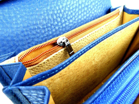 - Wewnątrz portfela znajduje się dodatkowy schowek zamykany na suwak, który można wykorzystać dowolnie,
