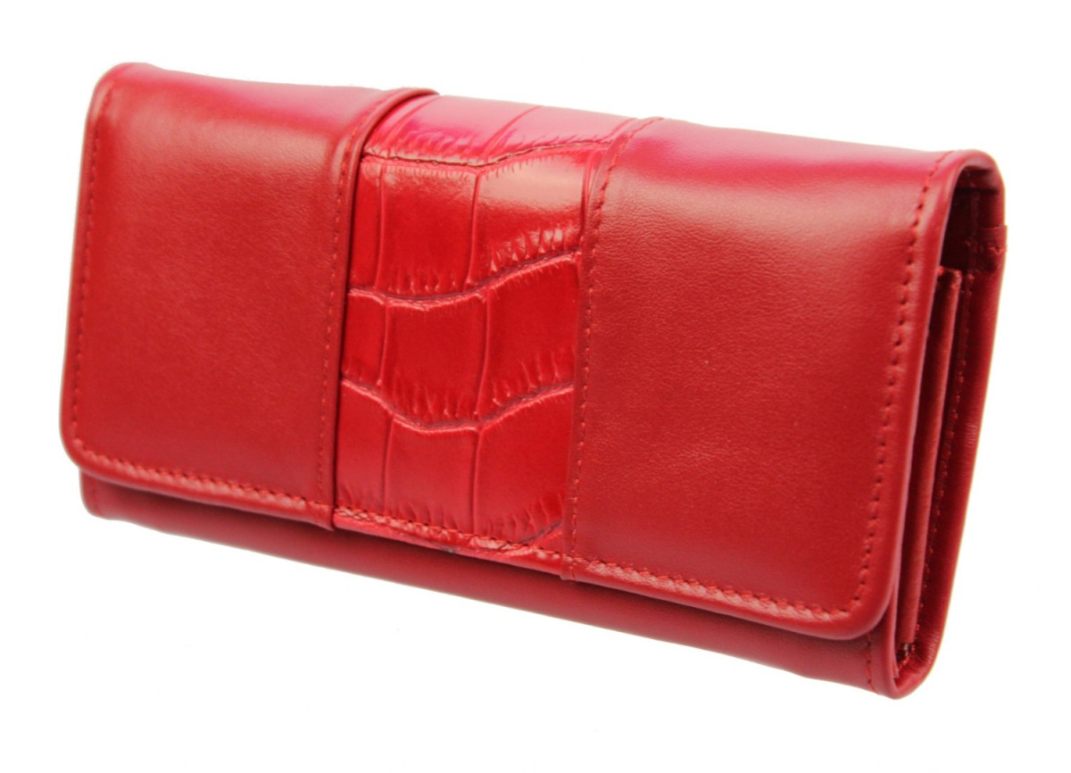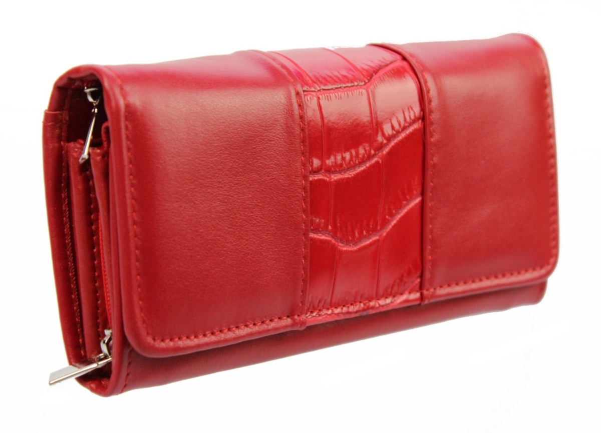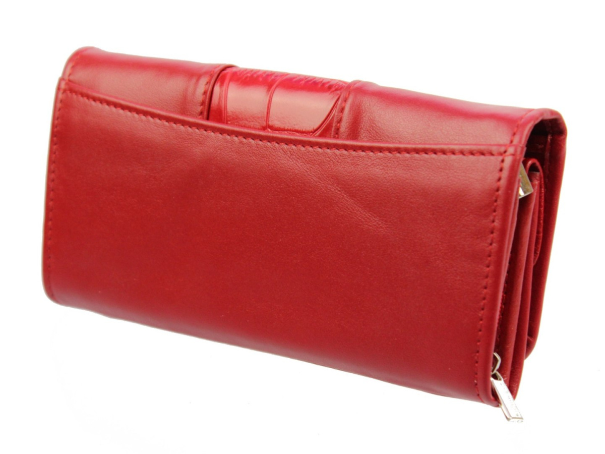 Portfel Damski PolskaGalanteria (PL) Długi Z Wstawką Suwak Skóra Naturalna CZERWONY WZÓR I D0728