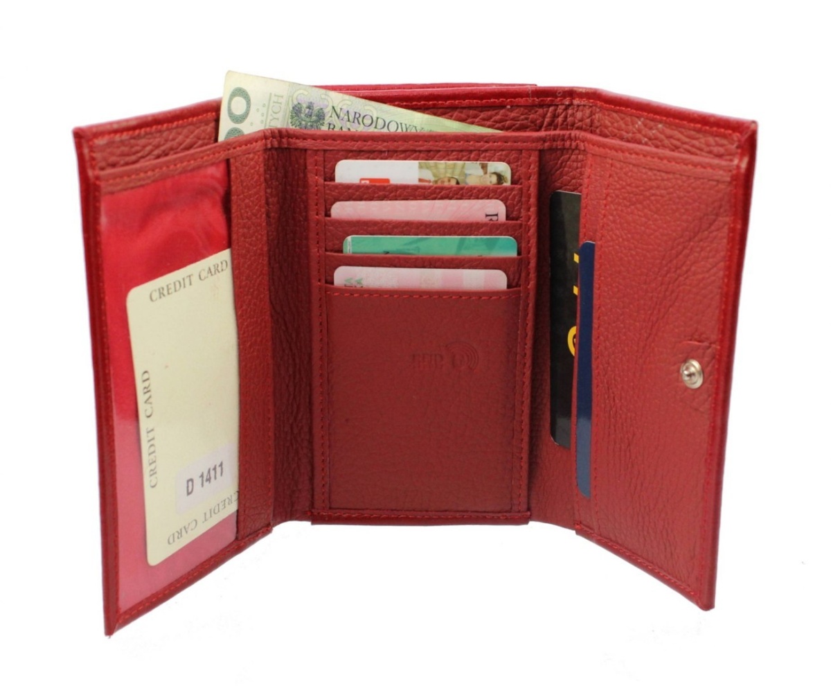 Portfel Damski PolskaGalanteria Z Wstawką 15 cm Suwak Skóra Naturalna CZERWONY Wzór I KP D1411-WST