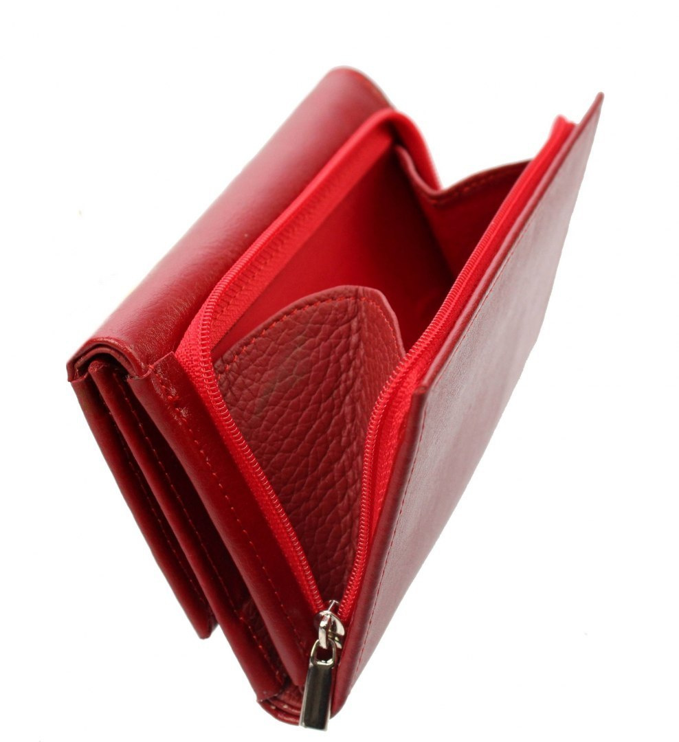 Portfel Damski PolskaGalanteria Z Wstawką 15 cm Suwak Skóra Naturalna CZERWONY Wzór II KP D1411-WST