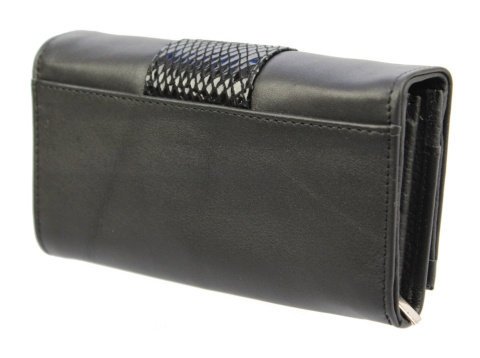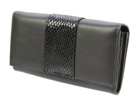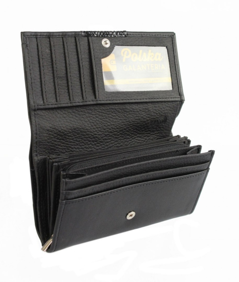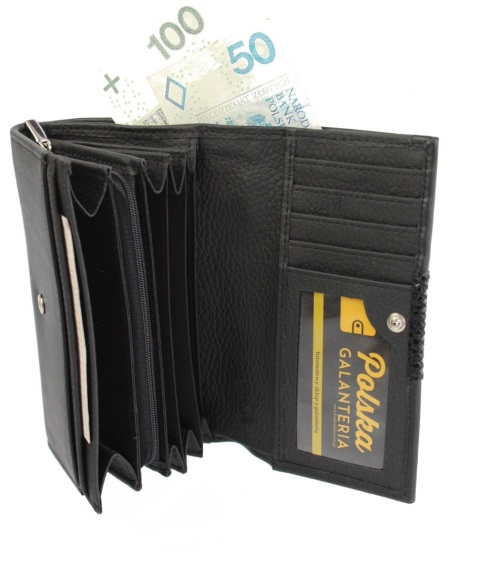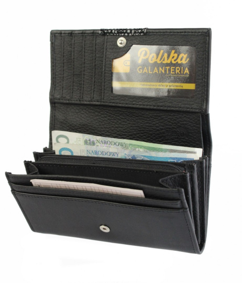 Portfel Damski PolskaGalanteria Z Wstawką Długi Suwak Skóra Naturalna CZARNY D14-WST