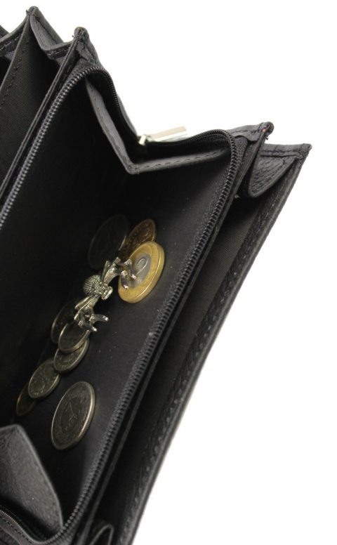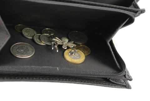 - Kieszeń z suwakiem na monety jest wykonana w taki sposób, że nie ma prześwitów w dolnych rogach - co zapobiega gubieniu zawartości.