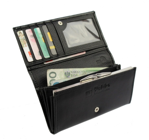 Portfel Damski PolskaGalanteria Z Wstawką Długi Z Klamrą Skóra Naturalna CZARNY KP D1602 WST