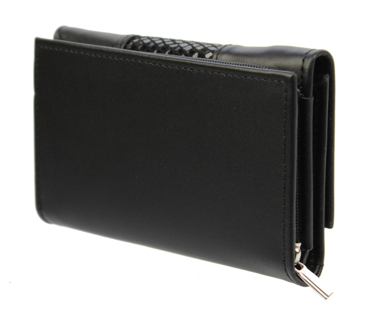 Portfel Damski PolskaGalanteria z Wstawką 13 cm Suwak Skóra Naturalna Czarny KP D38