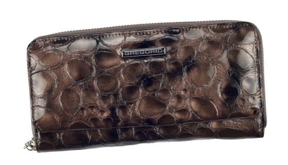 Portfel Damski Skóra Naturalna Lakierowana GREGORIO Duży Z Metalowym Suwakiem Piórnik FZ-111 SZARY 18,5 x 9,5 x 3,5 [cm]