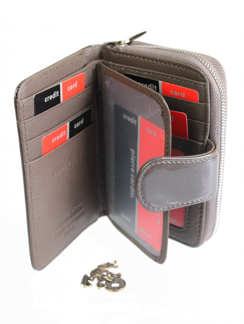 Portfel Damski Skóra Naturalna PIERRE CARDIN Z Suwakiem Piórnik 13 cm Lakierowany 115