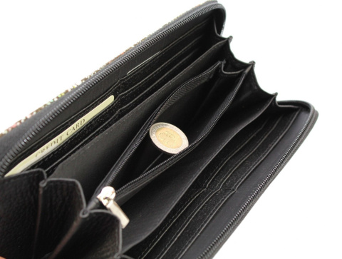 - Pomiędzy kieszeniami na banknoty, znajduje się kieszeń na bilon - zamykana na suwak, dokładnie wykończona w dolnych rogach , co zapobiega wypadaniu zawartości.