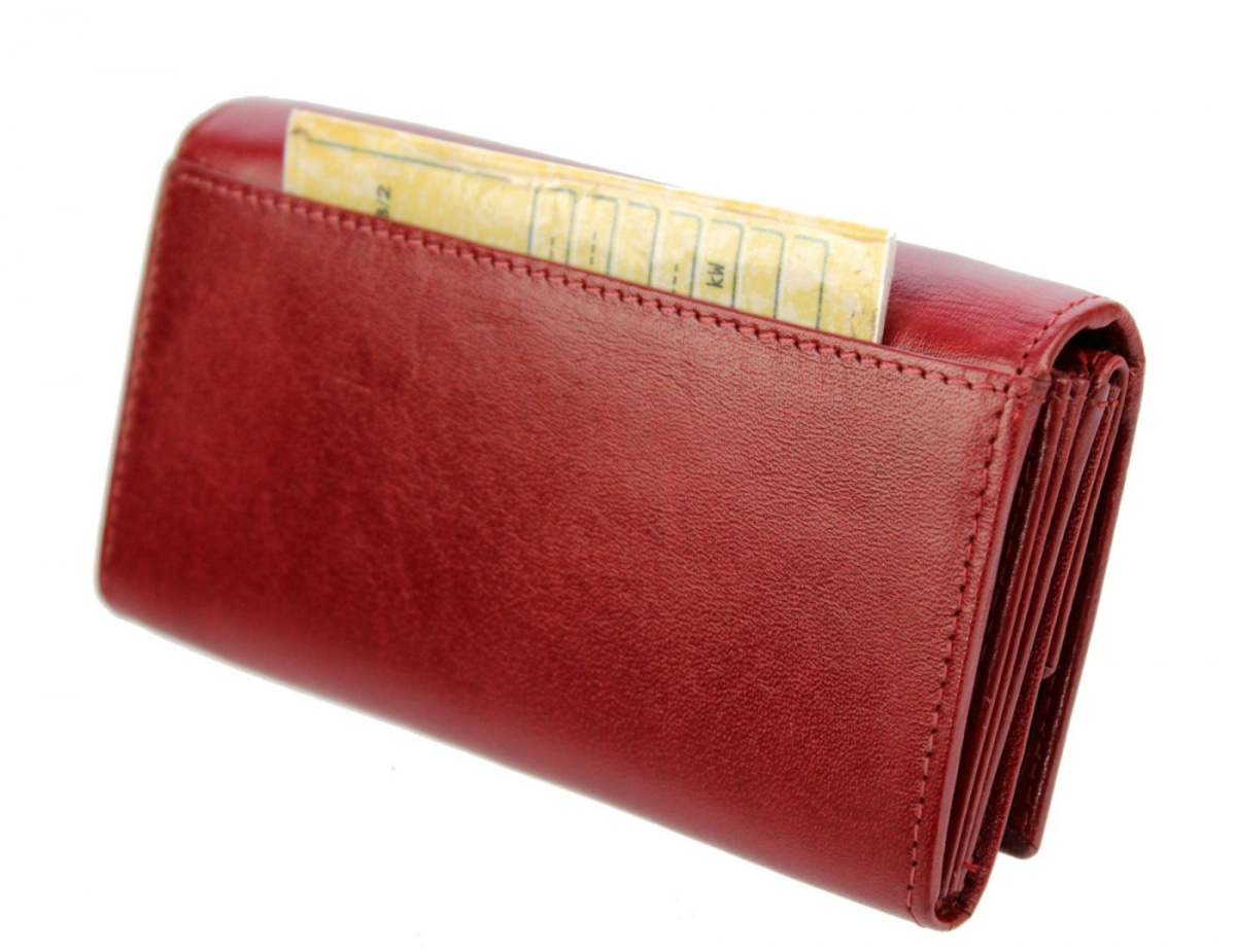 Bardzo ładny damski portfel skórzany wysokiej jakości. Model ten jest praktyczny, przeznaczony dla wymagających klientów ceniących sobie jakość i wytrzymałość. Do wykonania portfela wykorzystana została skóra licowa wysokiej jakości o intrygującej teksturze, miła i ciepła w dotyku. Również podszewki są uszyte z bardzo dobrej tkaniny o nowoczesnym wzornictwie i ładnej teksturze.