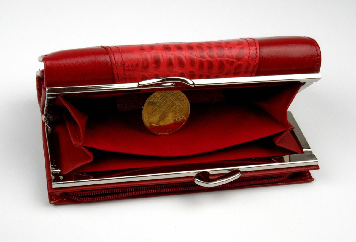 - Na zewnątrz znajdują się dwie kieszenie na monety: jedna zamykana na klamrę a druga na suwak. Obie kieszenie wykonana są w taki sposób, że nie ma prześwitów w dolnych rogach - co zapobiega gubieniu zawartości; kieszenie odchylają się na tyle daleko, że nie ma problemów z wyciąganiem bilonu; zawartość jest doskonale widoczna