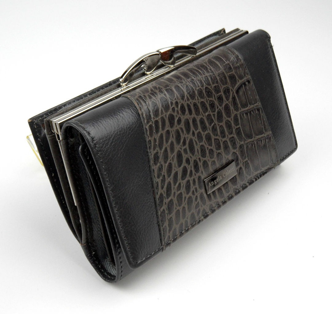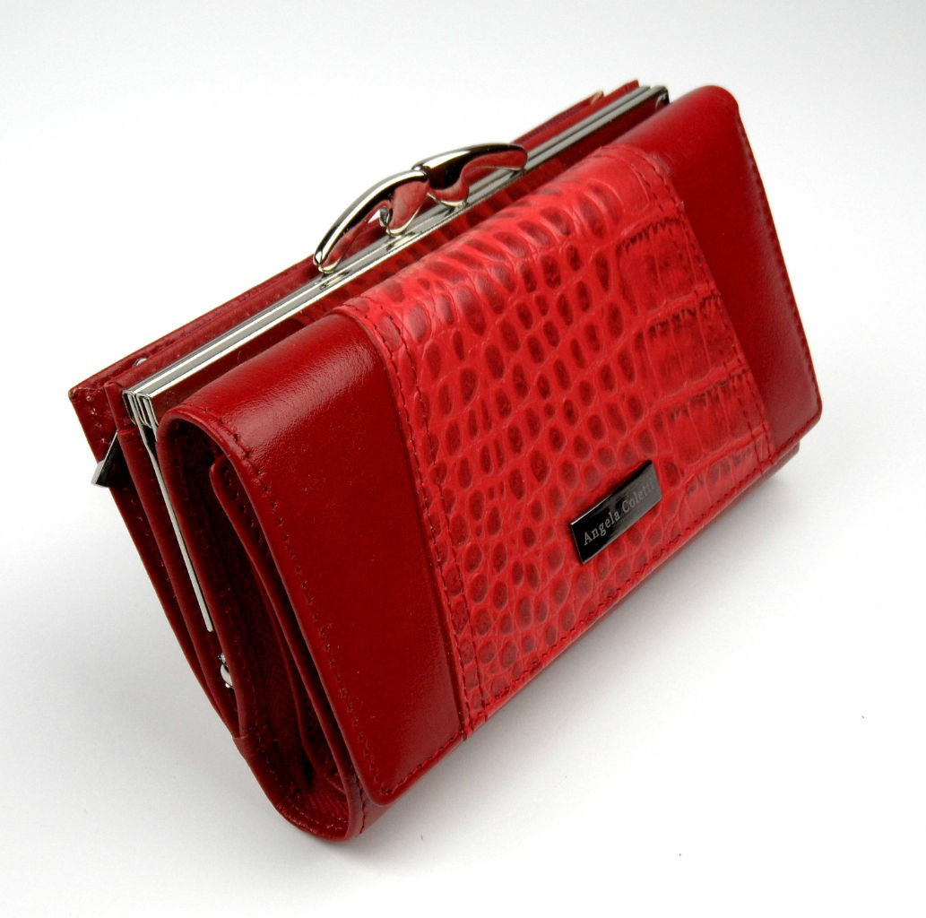 Portfel Damski Skórzany ANGELA MORETTI 14 cm Klamra i Suwak Skóra Naturalna