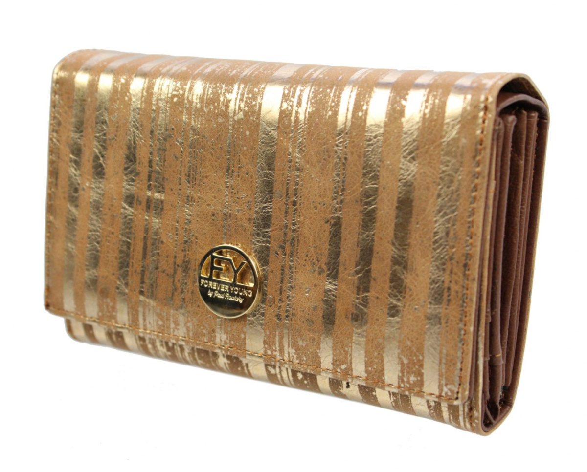 Klasyczny, skórzany kobiecy portfel, dostępny w uniwersalnym rozmiarze 15 x 10 x 3 centymetry oraz w ciepłych pastelowych kolorach. Modele te są niezwykle pojemne, bez trudu zmieszczą oprócz pieniędzy, najważniejsze dokumenty, zdjęcia bliskich oraz karty płatnicze. Portfel zawiera aż 5 kieszeni na banknoty, w tym dwie zamykane na zamek błyskawiczny, przeznaczone na bilon. Jedna z tym kieszeni ma wbudowaną dodatkową przegródkę. W klapie zamykającej modelu FOREVER YOUNG można przechowywać zdjęcia oraz karty formatu ID. Portfel FOREVER YOUNG zapakowany jest w eleganckie firmowe pudełko z logo producenta. Doskonały pomysł na prezent.