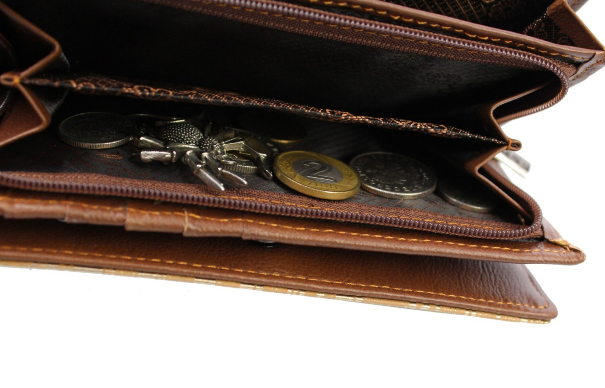 Rozbudowany i pojemny model. Jego rozmiary są dobrane w taki sposób, aby można było swobodnie ulokować zarówno banknoty jak i powszechnie używane dokumenty. Całość prezentuje się niezwykle ładnie i estetycznie.