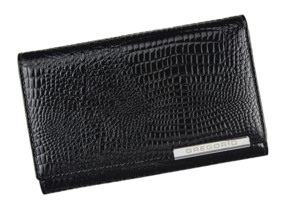 Portfel Damski Skórzany GREGORIO Duży Z Suwakiem Lakierowany RFID GF-112 CZARNY 15 x 10 x 4 [cm]