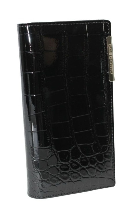Portfel Damski Skórzany GREGORIO Lakierowany Długi Z Suwakiem Na Zewnątrz BC-124 CZARNY 19,5 x 10 x 3,5 [cm]