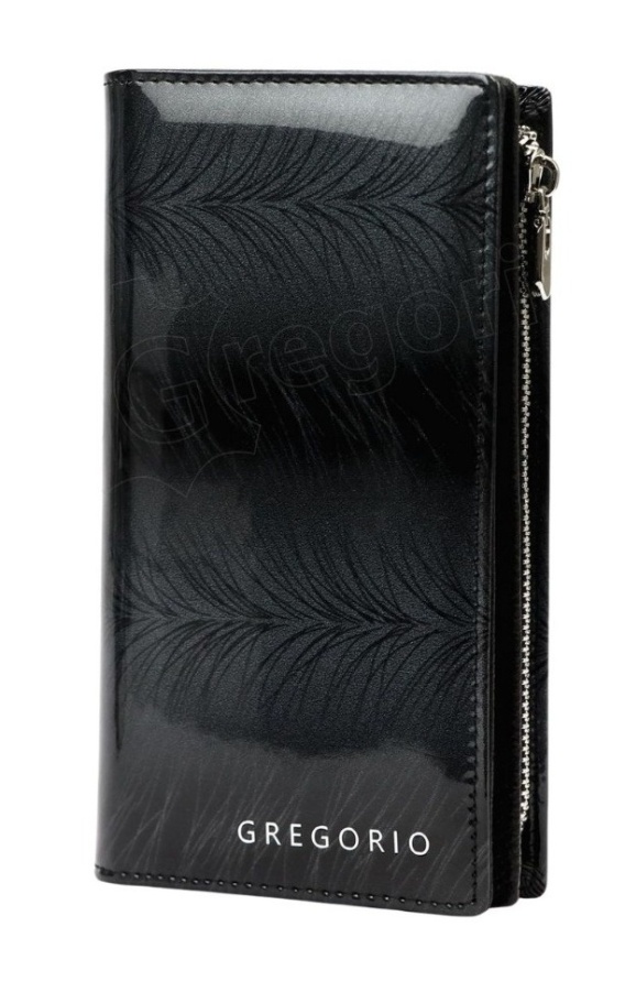 Portfel Damski Skórzany GREGORIO Lakierowany Długi Z Suwakiem Na Zewnątrz FF-124 CZARNY 19,5 x 10 x 3,5 [cm]