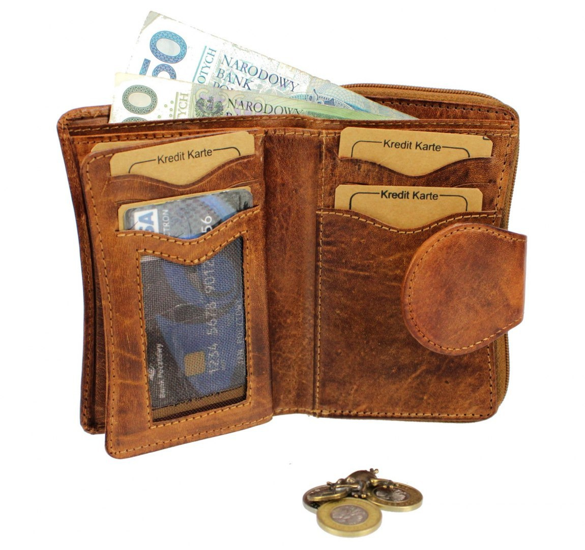 - duża, dzielona kieszeń na bilon / monety (bez prześwitów w dolnych rogach, co zapobiega gubieniu zawartości) zasuwana na suwak wysokiej jakości i wytrzymałości z poręcznym uchwytem, z małym schowkiem w przegrodzie