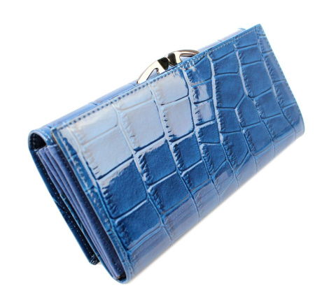 Model ten jest jednym z najlepszych i najczęściej używanych portfeli damskich. Jego rozmiary są dobrane w taki sposób, aby można było swobodnie ulokować zarówno banknoty jak i powszechnie używane dokumenty. Całość prezentuje się niezwykle ładnie i estetycznie. Wykonany z dwóch rodzajów skóry: gładkiej i tłoczonej wzorem skóry węża. Połączenie to jest bardzo efektowne i zapadające w pamięć.