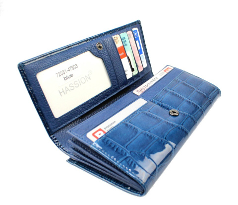 Portfel Damski Skórzany HASSION Długi Z Klamrą Na Zewnątrz Skóra Naturalna Wąż