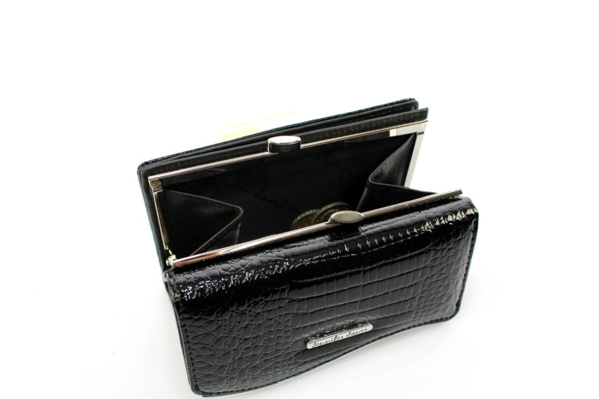 Portfel Damski Skórzany JENNIFER JONES 14cm Klamra I Klapka Skóra Naturalna Lakierowany JJ5245