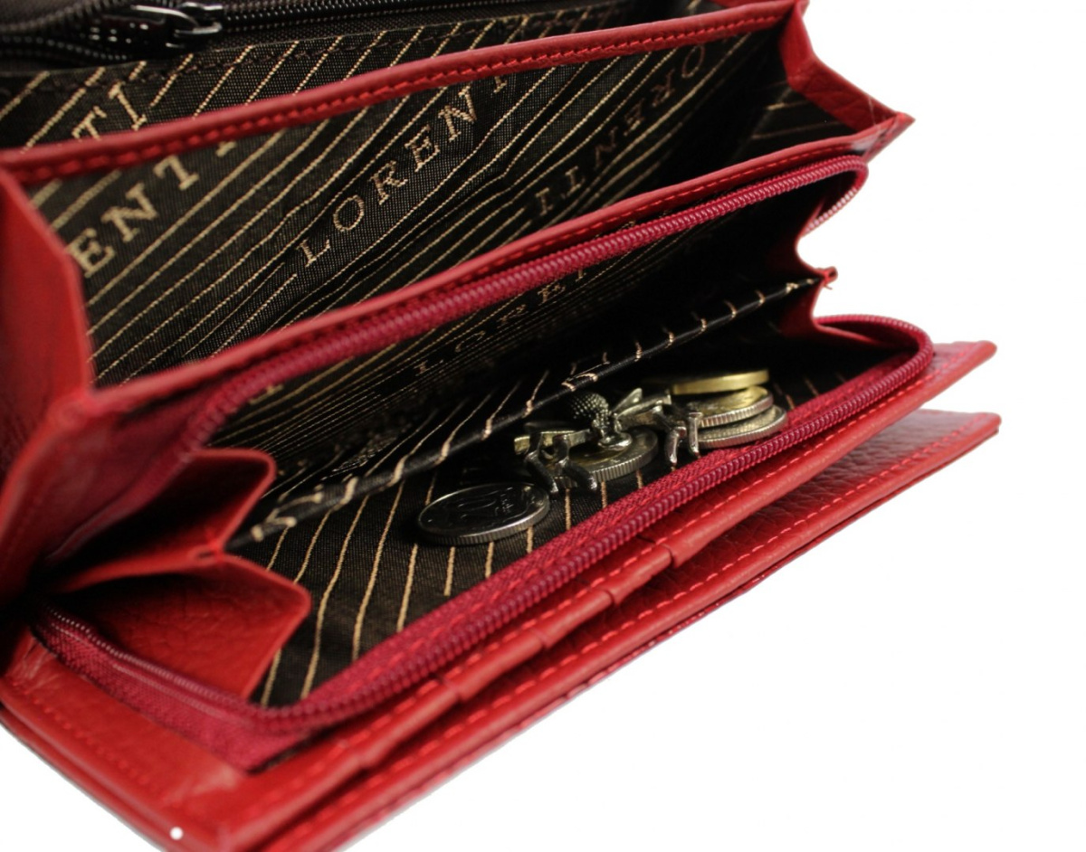 Portfel Damski Skórzany LORENTI Średni Suwak Z Klapką Wewnątrz Skóra Naturalna 74112-RSK
