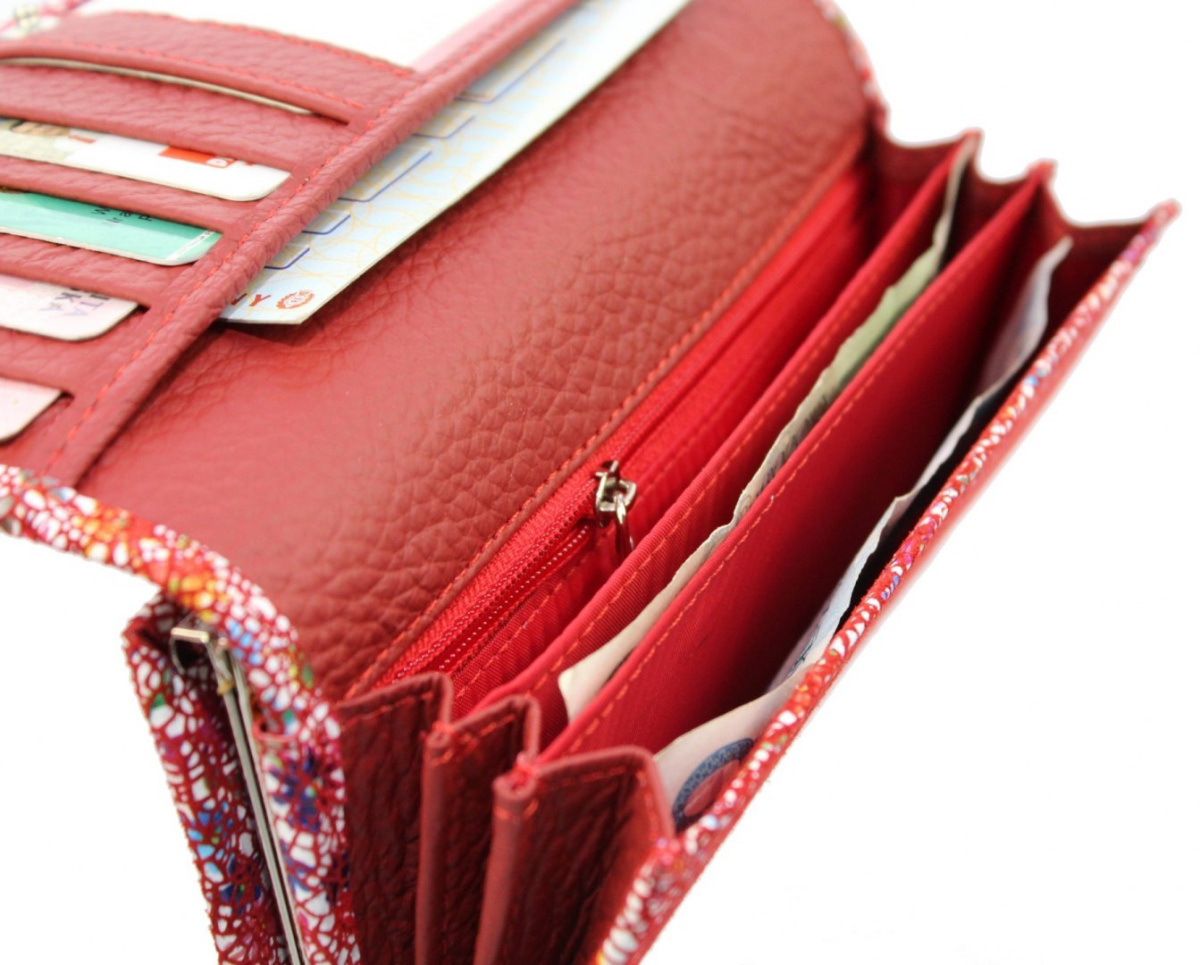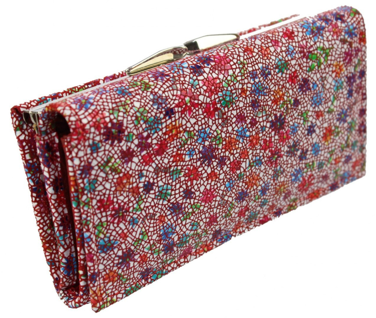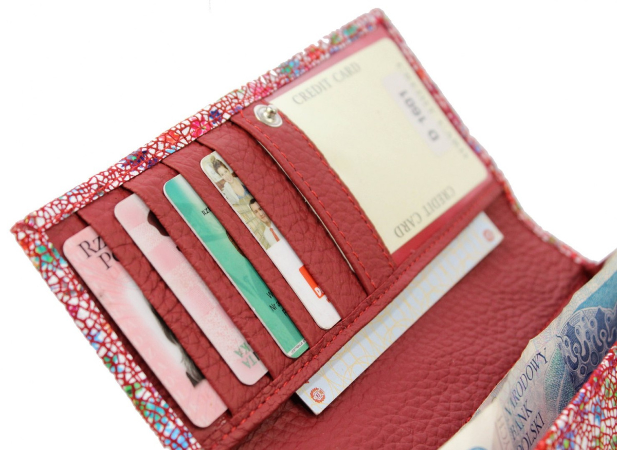 Szukasz portfela, który nie tylko pozwoli Ci w wygodny sposób przechowywać pieniądze oraz dokumenty, ale także będzie prezentował się niezwykle stylowo, podkreślając Twój unikalny styl? Portfel damski skórzany marki Polska Galanteria będzie idealną propozycją dla Ciebie. Model ten został wykonany z naturalnej skóry, w czerwonym kolorze, ozdobionej na całej powierzchni zewnętrznej za pomocą kwiatowej grafiki. Przez co nie sposób przejść obok niego obojętnie. Jego forma, na którą składa się wygodna przegroda zamykana na klamrę, przeznaczona do przechowywania bilonu, a także komora przeznaczona na banknoty i dokumenty oraz karty płatnicze. Ukryta pod klapą zamykaną na zatrzask sprawia, że model ten jest niezwykle wygodny i praktyczny w użytkowaniu.