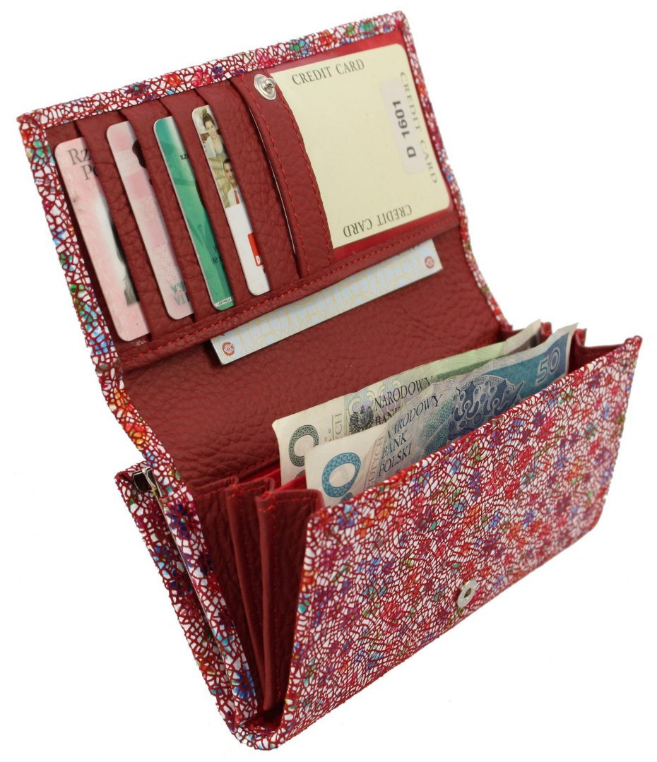 Portfel Damski Skórzany PolskaGalanteria Długi Z Klamrą Na Zewnątrz Czerwony Z Grafiką D1601