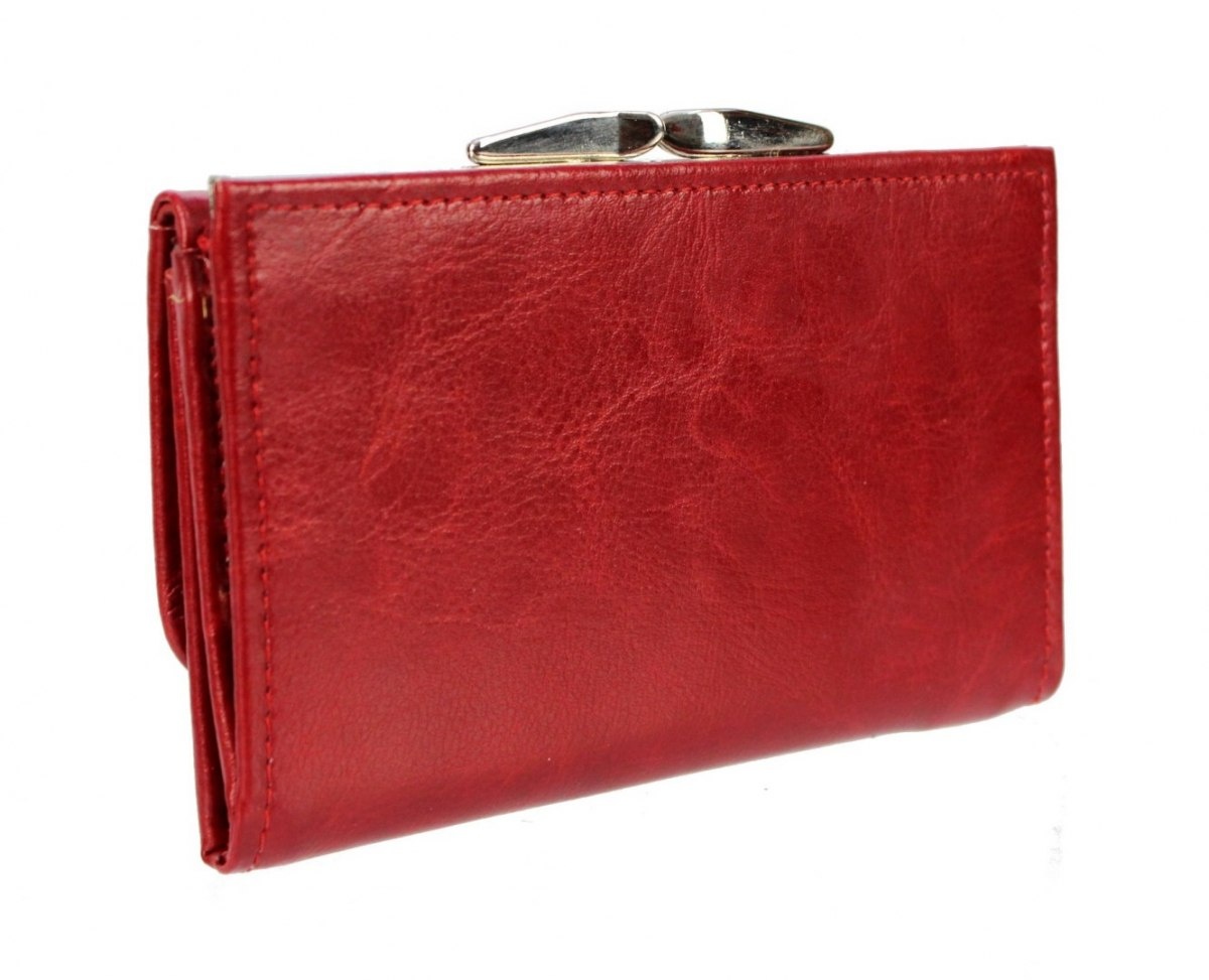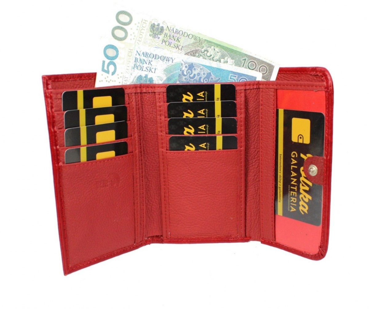 Portfel Damski Skórzany PolskaGalanteria (PL) 14 cm Klamra Skóra Naturalna Czerwony D39