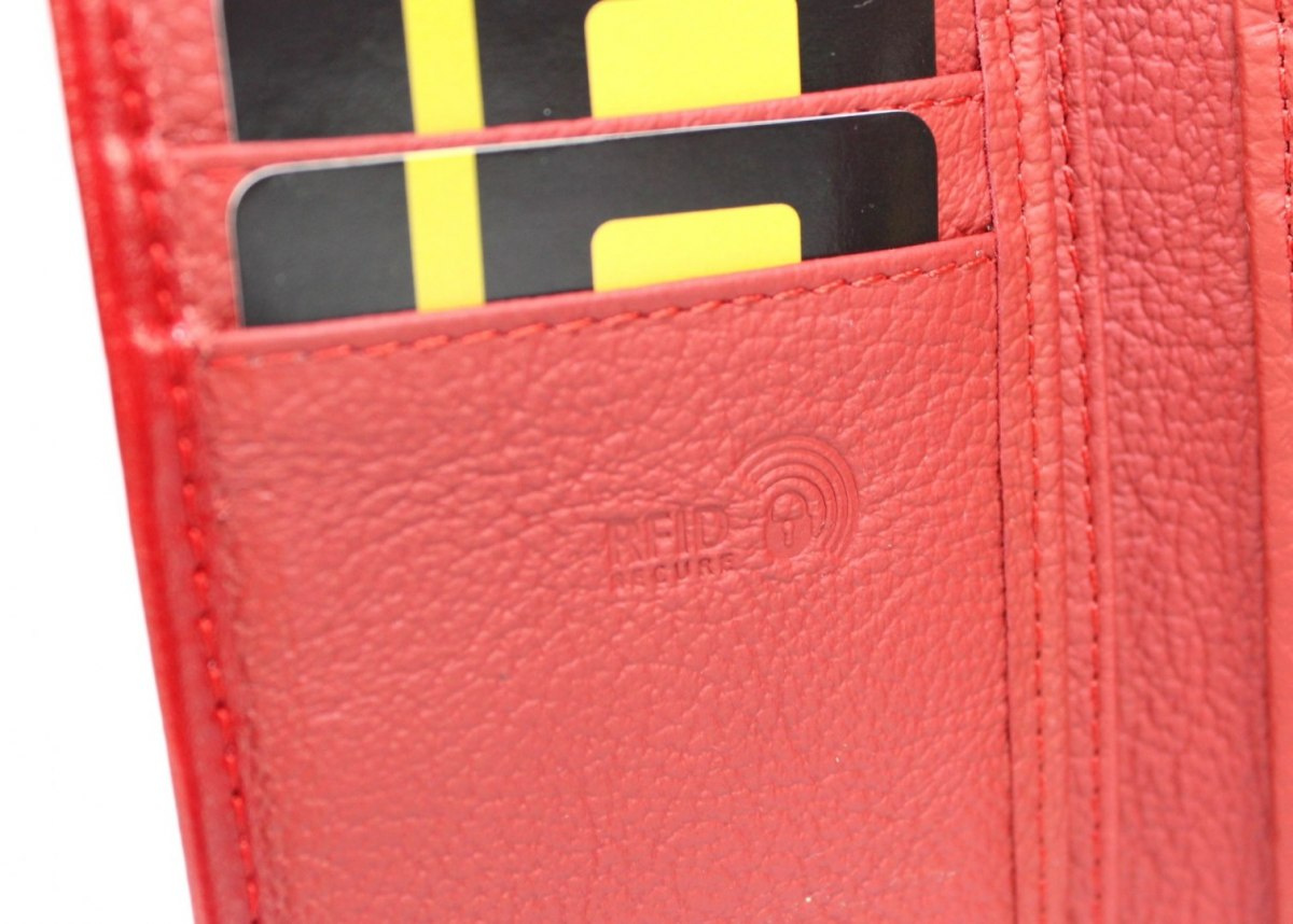 - Portfel jest zamykany klapką z napem