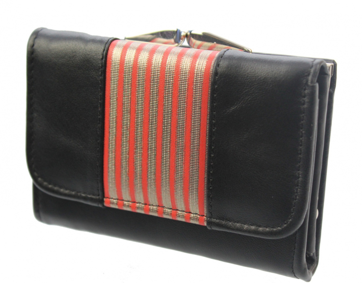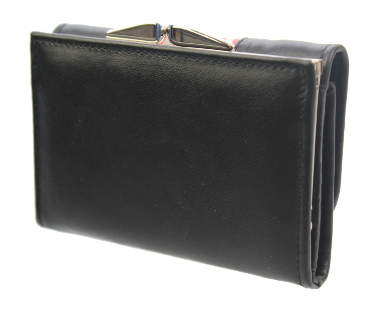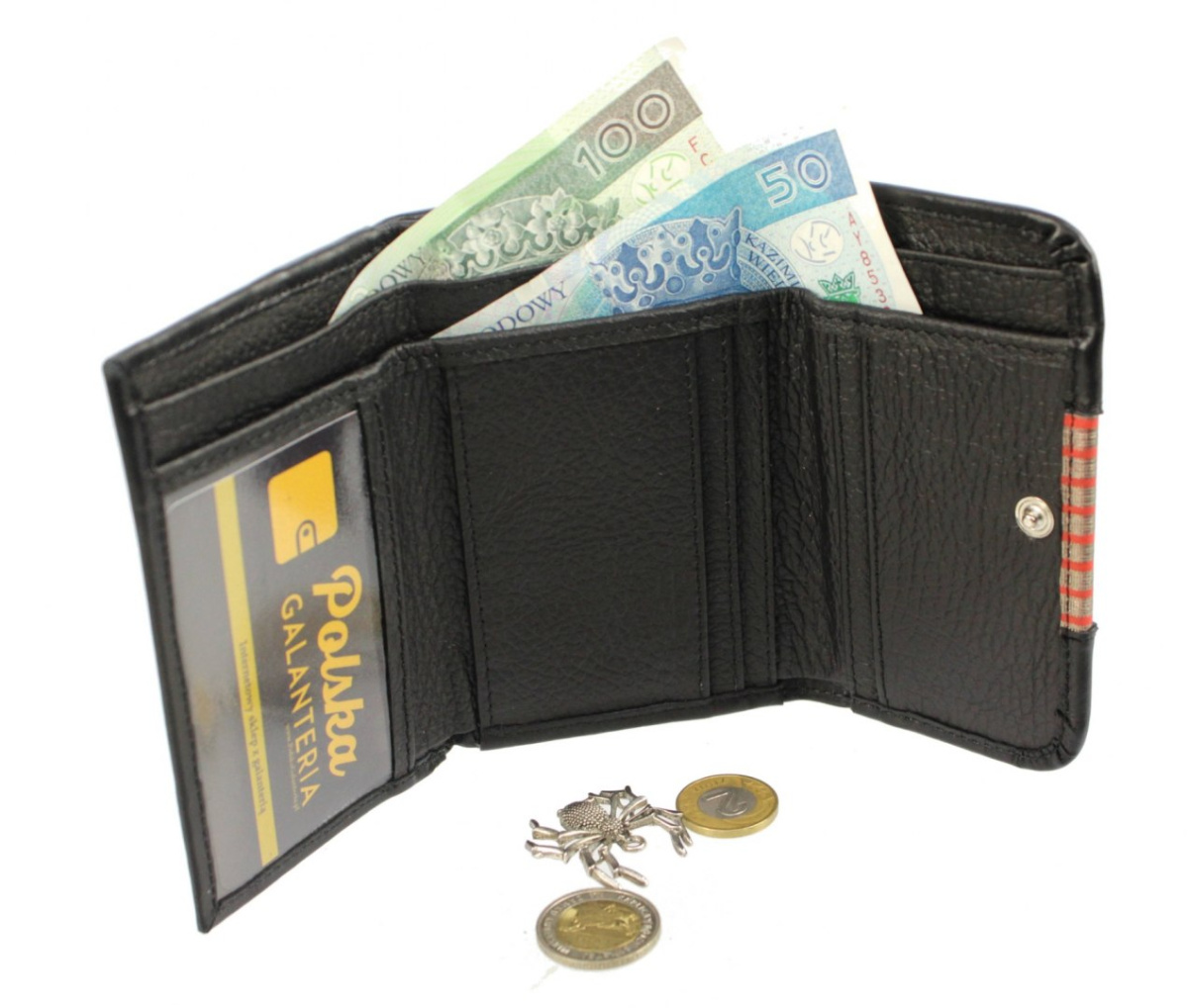 Portfel Damski Skórzany PolskaGalanteria Z Wstawką 12 cm Klamra Skóra Naturalna Czarny z Wstawką WZÓR III KP D1208-WST