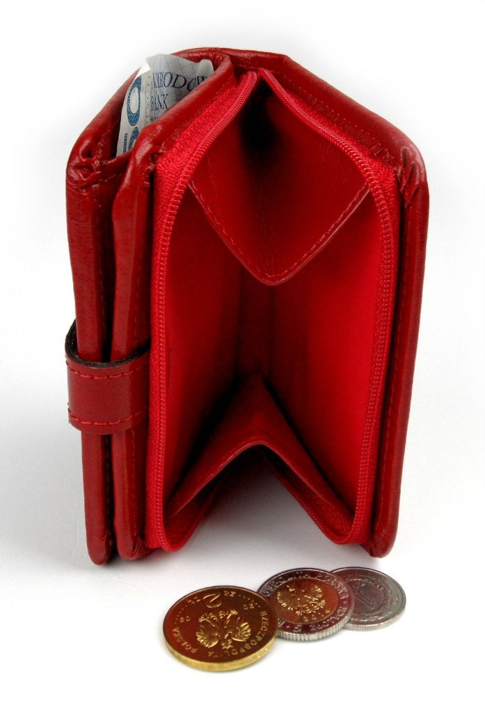- duża kieszeń na bilon / monety (bez prześwitów w dolnych rogach, co zapobiega gubieniu zawartości) zasuwana na suwak wysokiej jakości i wytrzymałości z poręcznym uchwytem