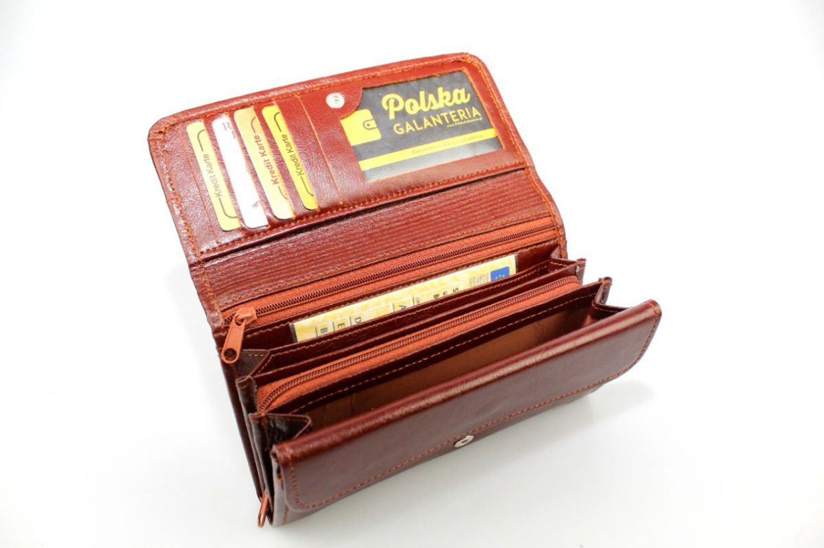 Elegancki damski portfel skórzany wysokiej jakości. Zaprojektowany dla klientów ceniących sobie zarówno wartości praktyczne jak i estetyczne. Wykorzystana skóra jest przyjemna w dotyku i wyjątkowo miękka.