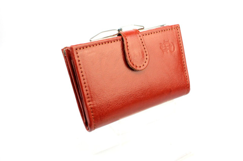 Skórzany portfel wykonany ze skóry naturalnej, licowej, wysokiej jakości. Jest ona miła, miękka i ciepła w dotyku. Wzór ten to jeden z najlepszych i najczęściej używanych portfeli wśród kobiet. Klasyczna stylistyka, przyjemny, naturalny skórzany zapach.