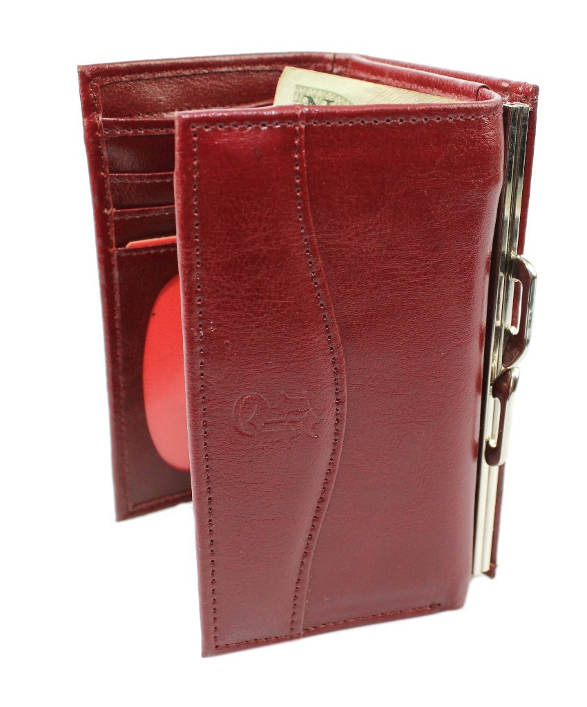 - Zewnętrzna duża praktyczna kieszeń na bilon, zapinana na klamrę bez prześwitów w dolnych rogach - co zapobiega gubieniu zawartości; kieszeń odchyla się na tyle daleko, że nie ma problemów z wyciąganiem bilonu