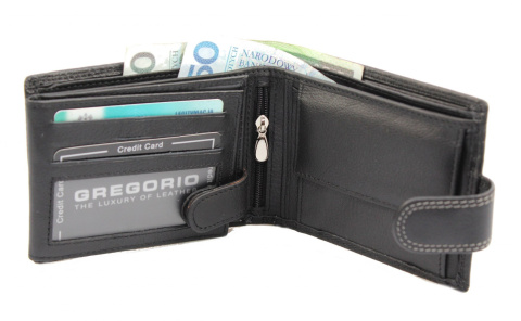 Portfel GREGORIO Skóra Naturalna Licowa Duży Poziomy Z Zapięciem Dwa Skrzydełka