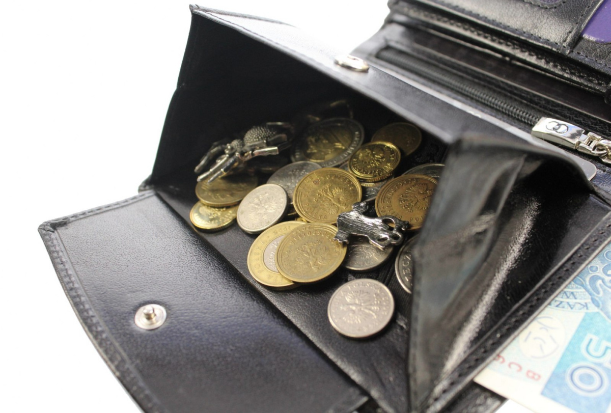 duża praktyczna kieszeń na bilon, zapinana na nap, bez prześwitów w dolnych rogach - co zapobiega gubieniu zawartości; kieszeń odchyla się na tyle daleko, że nie ma problemów z wyciąganiem bilonu
