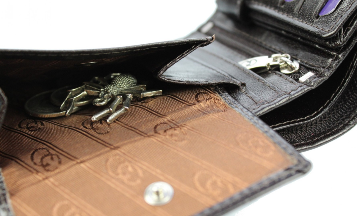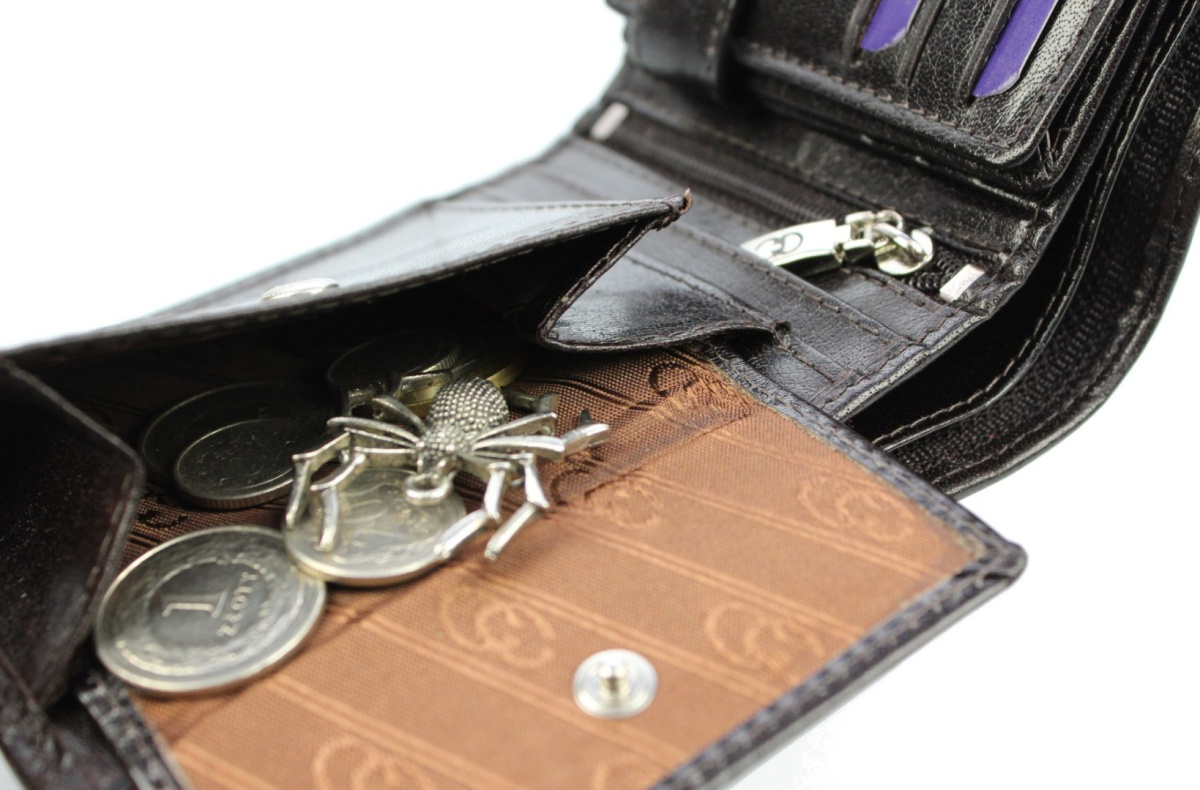 duża praktyczna kieszeń na bilon, zapinana na nap, bez prześwitów w dolnych rogach - co zapobiega gubieniu zawartości; kieszeń odchyla się na tyle daleko, że nie ma problemów z wyciąganiem bilonu