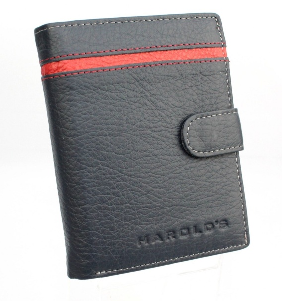 HAROLD'S to marka, która od wielu lat tworzy galanterię skórzaną na najwyższym poziomie. Proponowany model portfela zachowany został w klasycznym stylu ""książkowym"", który jest bardzo lubiany przez nowoczesnych mężczyzn. Wysokiej jakości skóra naturalna o intrygującej teksturze znacznie podnosi walory wizualne wyrobu oraz plasuje go na górnej półce w swojej kategorii cenowej. Wiele wewnętrznych przegródek i kieszeni pozwala na swobodne ulokowanie niezbędnych dokumentów i sporej ilości gotówki. Duża, praktyczna kieszeń na bilon zabezpieczona została przed zgubieniem zawartości oraz wyposażona w nap. Monety można swobodnie wyjmować dzięki daleko odchylającej się kieszeni.""